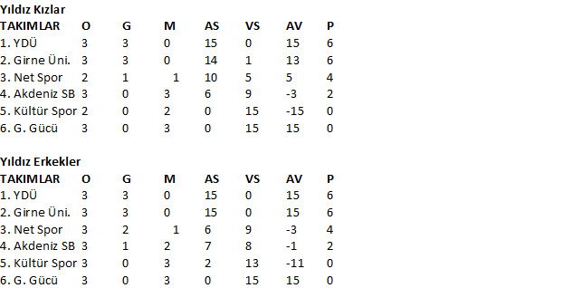 Badminton Federasyonu tarafından organize edilen Carlton Yıldızlar Ligi’nin üçüncü hafta maçları geçtiğimiz hafta Cuma günü oynandı. Toplam 6 karşılaşma oynanan 3. hafta maçlarında Yakın Doğu Üniversitesi hem kızlarda hem erkeklerde yenilgisiz liderliğini sürdürürken, Girne Üniversitesi kız ve erkek takımı ise yenilgisiz ve averajla ikinci sırada lideri takibe devam etti. Bir diğer kız takımı olarak dikkat çeken Net Spor haftayı galibiyetle kapatırken, Kültür Spor kız takımı Akdeniz kız takımı ve Gençlik Gücü kız takımı haftayı mağlubiyetle kapatan takımlar oldu. Net Spor Kulübü kızlarda olduğu gibi erkeklerde de haftayı galibiyetle kapatırken, Akdeniz Spor erkek takımı Gençlik Gücü ve zorlu bir mücadele sonunda Kültür Spor Kulübü, Net Spor’a mağlup olmaktan kurtulamadı. Federasyon yetkilileri tarafından yapılan açıklamada Yıldızlar Ligi’nde şu ana kadar 9 erkek ve kız maçı olmak üzere toplam 18 maçın oynandığı, kalan 12 maçın ardından ligde şampiyonların belli olacağını belirtildi. 3. hafta alınan sonuçlar ve oynanan maçlar sonucunda oluşan puan durumu şöyle: