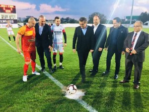 Stada tribündeki vatandaşların alkışlarıyla giren Başbakan Erhürman, maçın başlama vuruşunu yaptı.
