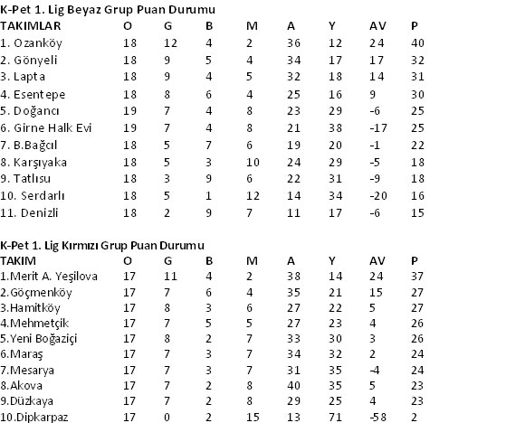 K-Pet Birinci Lig Kırmızı ve Beyaz Grup’ta Ozanköy ile Merit Alsancak Yeşilova’nın şampiyonluklarını ilan etmesinin ardından kalan maçlarda gözler Play-off ve lige tuttunma mücadelesine çevrildi.
