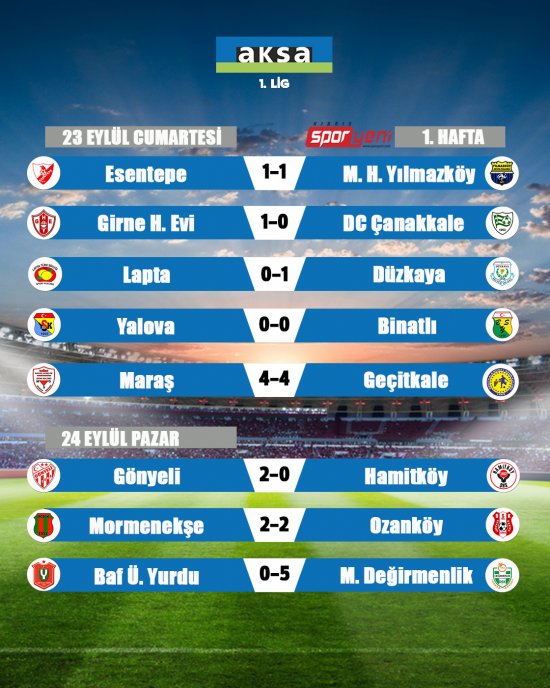 İlk haftanın en gollü maçında Maraş ile Geçitkale 4-4 berabere kaldı. Mormenekşe ile Ozanköy arasında 2-2 sonuçlanan karşılaşma haftanın bir diğer berabere tamamlanan maçı oldu. Esentepe ile Yılmazköy ilk haftayı 1-1’lik skorla birer puanla tamamlarken, 0-0 biten Yalova – Binatlı karşılaşması ise haftanın tek golsüz sona eren maçı oldu.
