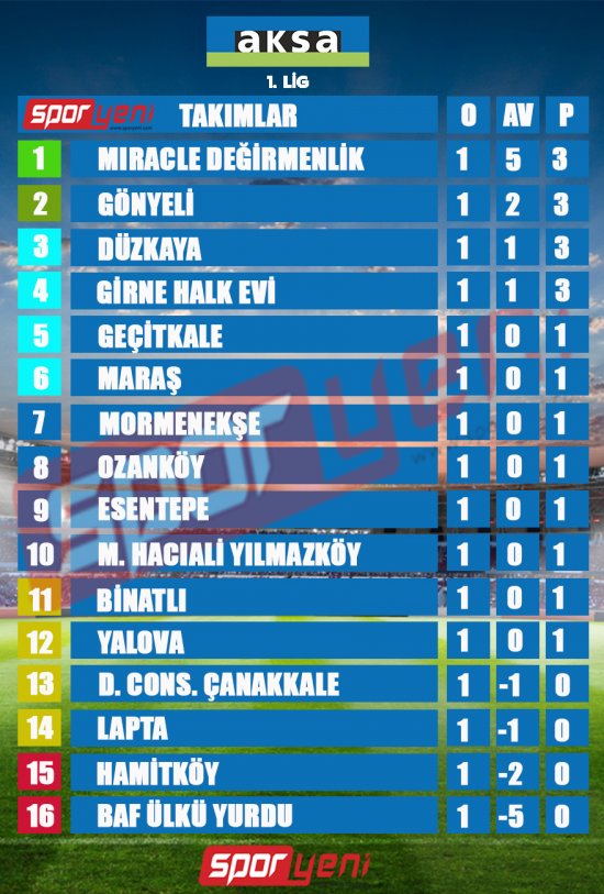 AKSA Birinci Lig’de 2023-24 sezonu hafta sonu oynanan 1. hafta maçları ile başladı. İlk haftayı elde ettiği farklı galibiyet ve averajla Miracle Değirmenlik lider tamamladı.