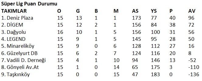 Dokuz takımın mücadele verdiği ligde son haftaya girilirken, haftanın en kritik ve hatta şampiyonluk maçı olarak nitelendirilen DİGEM-Deniz Plaza maçında gülen taraf Deniz Plaza oldu.