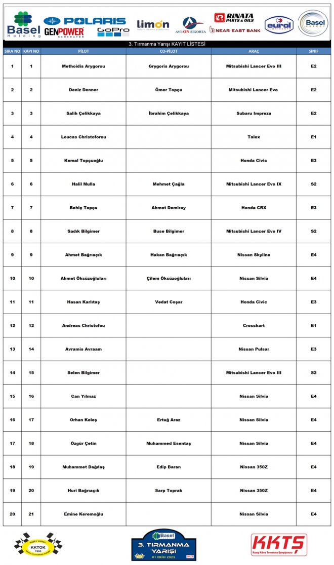 Dört yarıştan oluşacak şampiyonaya bu yıl ilgi artarken, geçtiğimiz sezon şampiyonu Methoidis Arygorou, şampiyonada bir çok kez şampiyon olan Deniz Denner ve Doğa Koyuncu, daha önceki sezonların başarılı sürücüsü Kemal Topçuoğlu, Güney Kıbrıs Time Attack Şampiyonu ve tırmanma şampiyonası ikinci yarışının galibi Loucas Christoforou, E4 kategorisi son şampiyonu Ahmet Bağrıaçık, son ralli şampiyonu Halil Mulla'nın da içinde bulunduğu 20 sürücü Kantara’da en iyi zamanı yapmaya çalışacaklar.