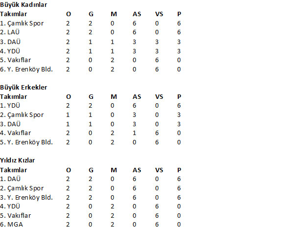 Büyükler liglerine 28 ve 29 Kasım tarihlerinde oynanacak beş karşılaşma ile devam edilecek. Vakıflar ile Yeni Erenköy Belediyesi’nin kadın ve erkeklerde karşılaşacağı haftada kadınlarda zirveyi yakından ilgilendiren maçta Çamlık Spor, LAÜ’yü konuk edecek. Çamlık Spor erkek takımının DAÜ’yü ağırlayacağı haftada YDÜ ile DAÜ kadın takımları karşı karşıya gelecek. Alınan sonuçlar program ve puan durumları şöyle: