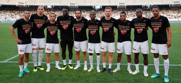 Yeni sezon hazırlıklarına devam eden Galatasaray, son hazırlık karşılaşmasında dün akşam Yunanistan Ligi şampiyonu AEK ile karşılaştı. Sarı kırmızılılar bu mücadeleyi 3-2 kaybetti. Ancak, maçtan önce Galatasaray’ın Yunan halkına yaptığı jest büyük takdir topladı. Sarı kırmızılı ekip maç öncesi ısınmak için çıktığı sahaya anlamlı bir tişört ile çıktı. Galatasaraylı oyuncular Yunanistan'da yaşanan yangın felaketine duyarsız kalmadı ve üzerinde "geçmiş olsun komşu" yazan tişörtler ile ısınmaya çıktı. Yunanistan'ın başkenti Atina yakınlarında çıkan yangın sonucunda hayatını kaybedenler için maçın başında 1 dakikalık saygı duruşunda bulunuldu.