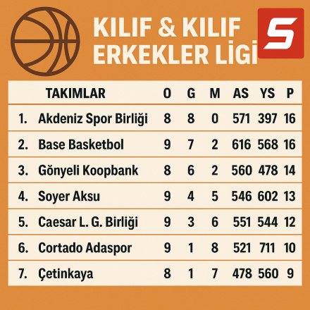 Kırmızı siyahlılar 9 maçta 3 galibiyet 12 puanla beşinci durumda yer alıyor. Base Basketbol aldığı mağlubiyetle ikinci yenilgisini aldı.
