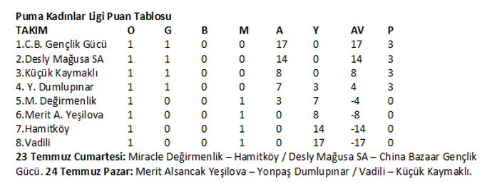 İlk maçlar sonunda gol averajıyla China Bazaar Gençlik Gücü, sezonun ilk lideri oldu. Oynanan 4 karşılaşmada gollerin sağanak gibi gelmesi dikkat çekti.