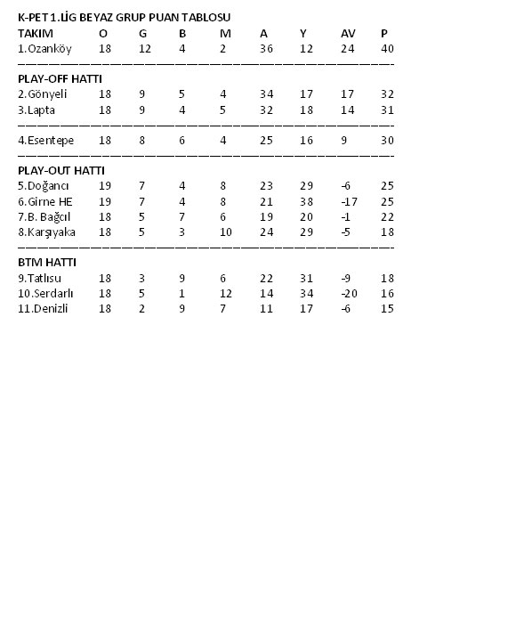 Birinci Lig Kırmızı Grup dün oynanan maçlarla noktalandı. Beyaz Grup’ta ise bugün ve gelecek hafta oynanacak olan son hafta maçlarının ardından noktalanacak