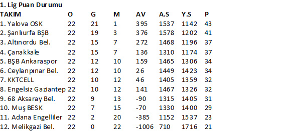 Türkiye Tekerlekli Sandalye Basketbol 1. Ligi’nde başarılı bir sezonu geride bırakan Kuzey Kıbrıs Turkcell Tekerlekli Sandalye Basketbol Takımı Gaziantep Engelli S.K deplasmanında oynadığı son sezonun son maçını 63 – 72 kazanarak adaya mutlu döndü.