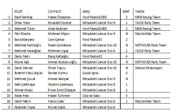 Yarışın kayıtları kapanırken, yarışa 16 ekip kayıt yaptırdı. Sezonun ilk yarışını kazanan Rauf Denktaş-Hasan Özseyhan ikilisinin de bulunduğu Sınıf 2’de 3 ekip yarışacak. Sezonun ilk yarışında Denktaş-Savarona ikilisi ile birincilik mücadelesi veren Ömer Yıldız-Mustafa Yücener ikilisinin de bulunduğu sınıf 1’de ise 5 ekip yarışacak. Sınıf N’de 5, Sınıf 4’te ise 3 ekip birincilik mücadelesi verecek.