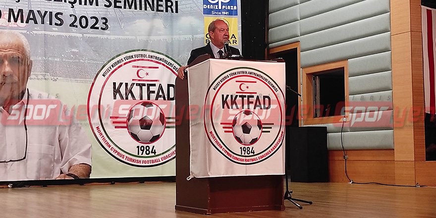 Kıbrıs Türk Futbol Federasyonu (KTFF) ile Kuzey Kıbrıs Türk Futbol Antrenörleri Derneği’nin (KKTFAD) iş birliği çerçevesinde düzenlenen Süleyman Göktaş Antrenör Gelişim Semineri’nin ikinci gününde açılış seremonisi gerçekleştirildi. Salamis Hotel’de yer alan ve her sezon öncesi antrenörlerin gelişimi için düzenlenen seminerin açılış töreninde Cumhurbaşkanı Ersin Tatar, KTFF Başkanı Hasan Sertoğlu, KTFAD Başkanı Hasan Topaloğlu ve Süleyman Göktaş’ın oğlu Canol Göktaş’ın yanı sıra UEFA Pro Lisans Teknik Direktör Fatih Terim birer konuşma yaptı. Terim konuşmasının bir bölümünde ambargolara vurgu yaparak “FIFA ve UEFA’nın kendi anlayışlarında, kendi varlıklarının en önemli sebeplerinden birisi futbolu Dünya’ya yaymaktır. Ama ne hikmetse şuradan karşıyı görmemize rağmen o taraf oynuyor, bu taraf oynamıyor. Bunu da anlamak çok zor” ifadelerini kullandı.