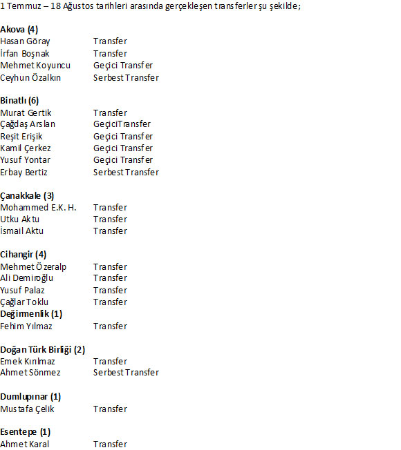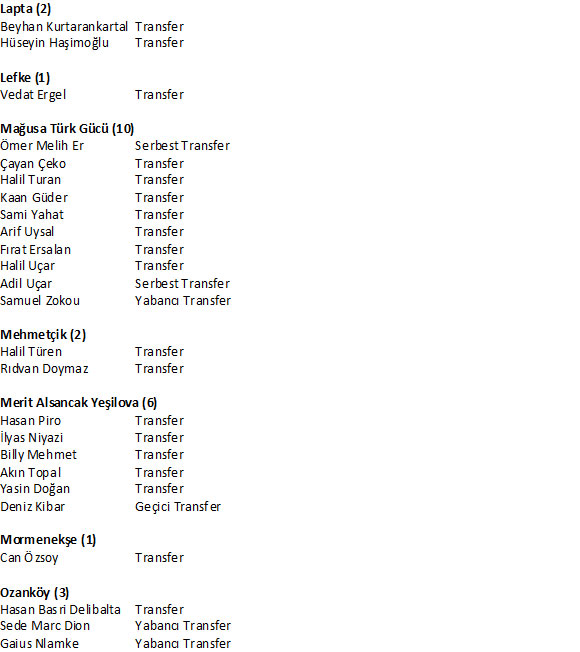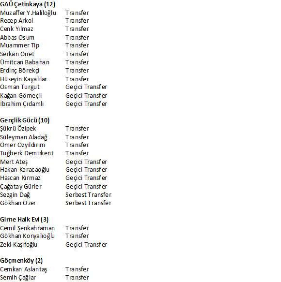 1 Temmuz – 18 Ağustos tarihleri arasında açık olan bonservisli transfer döneminde en fazla transferi Süper Lig’in güçlü ekiplerinden GAÜ Çetinkaya yaptı. Bu sezon şampiyonluk hasretine son vermeyi hedefleyen sarı kırmızılılar, şu ana kadar 12 oyuncuya imza attırdı. Süreç içerisinde Çetinkaya’yı takip eden Görneç 11, Mağusa Türk Gücü ise 10 kişiye imza attırdı.