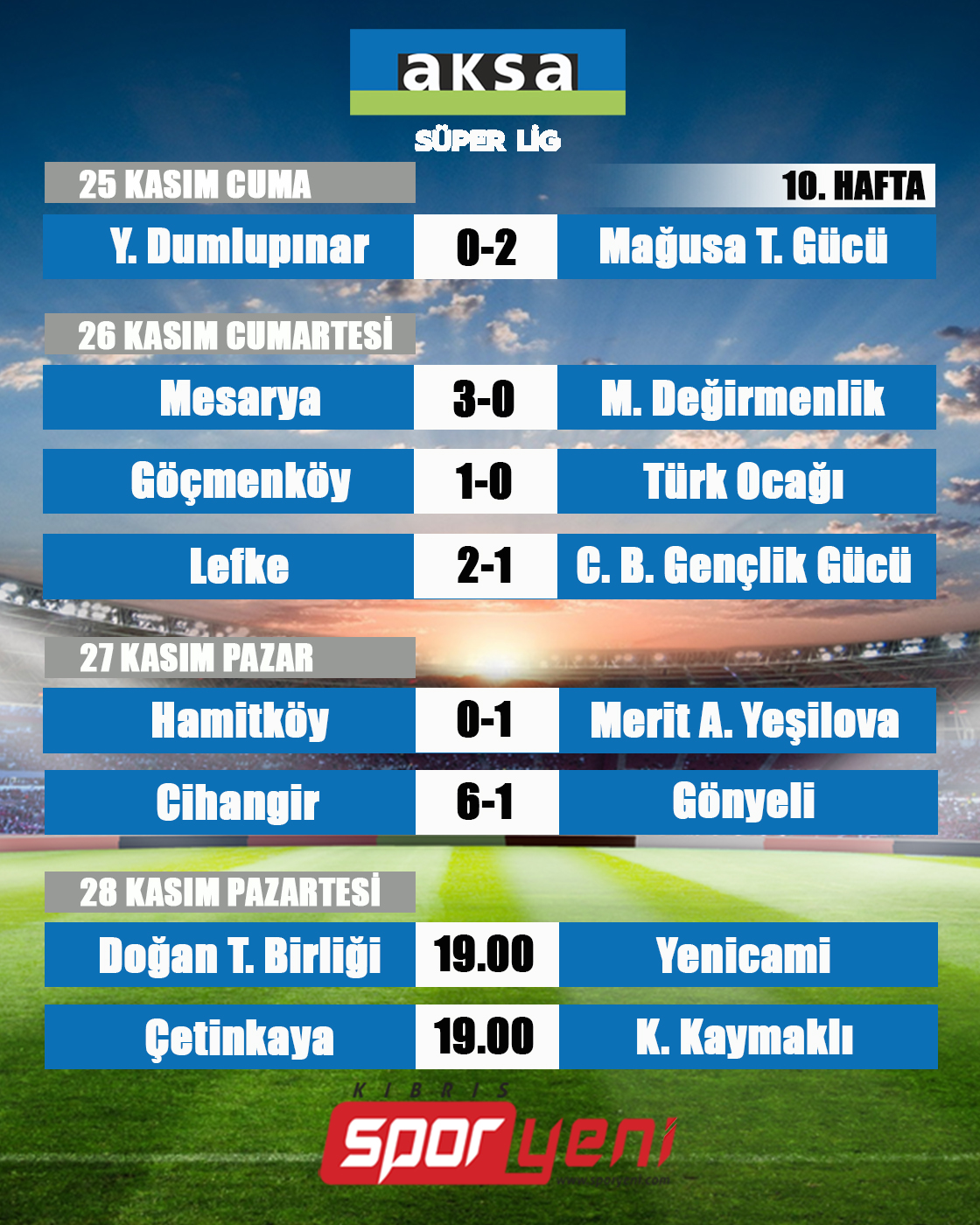 AKSA Süper Lig’de 10. hafta bugün oynanacak iki karşılaşma ile tamamlanacak. Haftanın kapanışında Girne ve Lefkoşa’da iki gece maçı oynanacak.