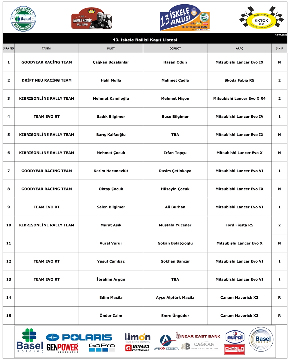 Yarışın hazırlıkları sürerken, kayıt işlemleri tamamlandı ve yarışa 4 farklı sınıfta toplam 15 ekip kayıt yaptırdı. Ülkemizin yaz sıcağında yapılmasına rağmen her sezon büyük ilgi gören ve keyifli dakikalara sahne olan İskele Rallisi’nde, oldukça çekişme yaşanması bekleniyor.