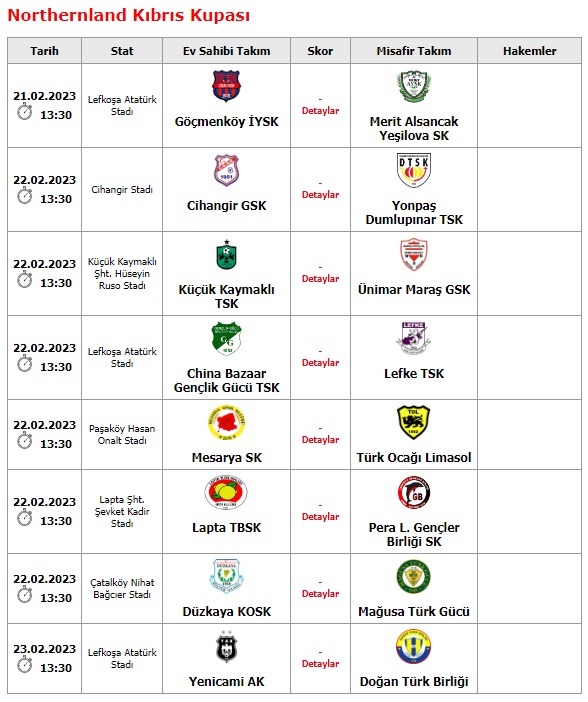 Futbol müsabakalarını 20 Şubat 2023 tarihine kadar erteleyen Kıbrıs Türk Futbol Federasyonu (KTFF), Northernland Kıbrıs Kupası 2. Tur maçlarının 21 Şubat tarihinden itibaren oynanacağını duyurdu
