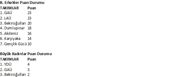 Büyük Erkekler’de son ayak karşılaşmasında rakibi LAÜ’yü 4-2 yenen GAÜ averajla şampiyonluğa ulaşırken, Büyük Kadınlar’da şampiyonluğa YDÜ ulaştı.