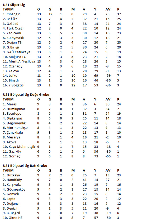 Kıbrıs Türk Futbol Federasyonu tarafından organize edilen U21 liglerinde mücadele devam ediyor.