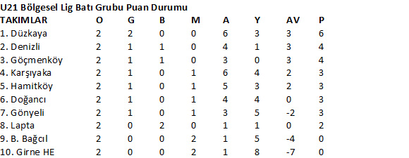 U 21 Bölgesel Lig Doğu Grubu’nda oynadığı iki karşılaşmayı kazanan Maraş, Esentepe, Değirmenlik ve Dumlupınar yollarına kayıpsız devam ediyor. Maraş rakiplerinin üzerinde averajla lider konumda bulunuyor. Batı Grubu’nda ikide iki yapan Düzkaya ise haftayı lider olarak tamamladı. Alınan sonuçlar ve puan durumları şöyle: